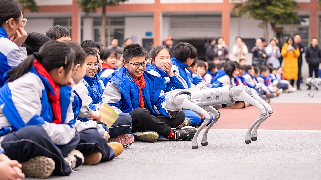 四川眉山:“开学第一课”科技感拉满 机器狗表演受青睐