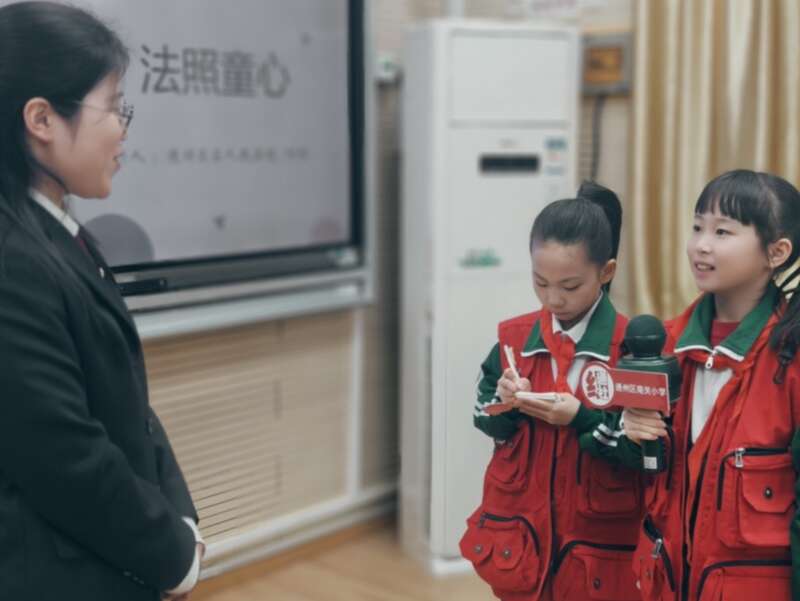 在通州区南关小学,通州法院立案庭法官何娇敲响新学期的“法治上课铃”。通过“高空抛物案”“同桌刻字案”“铁锤砸人案”等民事案件和“寻衅滋事案”“投放危险物案”和“故意伤害案”等刑事案件,何娇法官和学生们一起探讨身边的法律问题,告诫同学们“勿以恶小而为之”,引导学生们从小树牢法治意识,做知法、懂法、守法的好学生。
