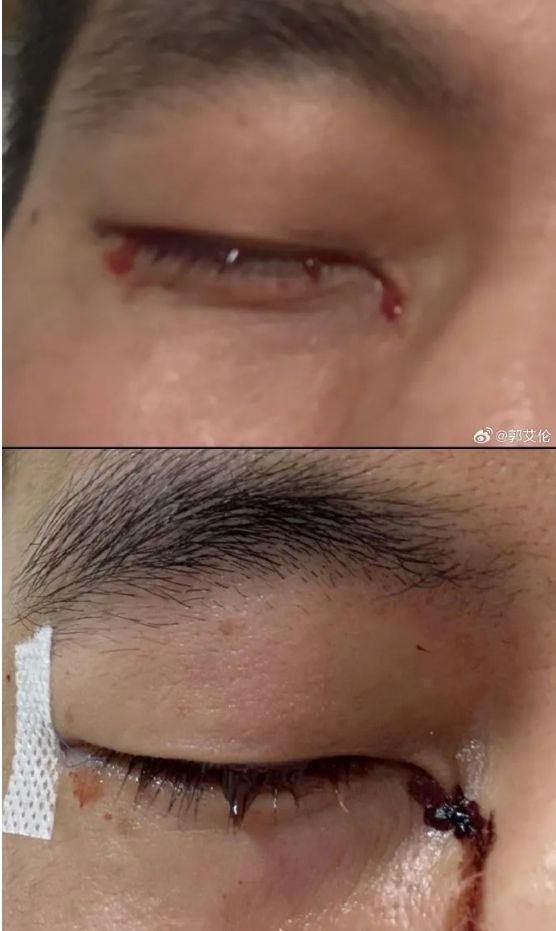 照片显示,郭艾伦的眼睛流血,受伤严重。