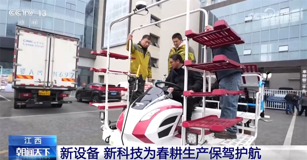 在江西,各大农机大市场生意火爆,从耕地、播种到收获、运输,农业生产全流程的机具设备一应俱全。这台搭载了先进导航自动驾驶系统的智能插秧机颇为走俏,基于最新的绘田北斗卫星导航系统,无论是直线行驶还是曲线作业,都能按照预设路线行进,保障作业面积全覆盖。