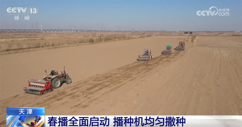 在天津市静海区西翟庄镇的一片农田里,四台播种机排好队,按照线路行进,将小麦种子均匀地撒进地里。作为天津市最南端的涉农区,这里的播种也标志着今年天津220多万亩的春播工作全面启动。