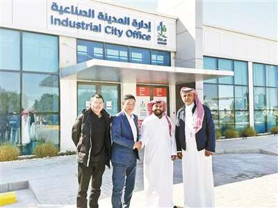 春节期间,徐镜钱(左二)靠AI生意助手接下大额国际订单,并在沙特考察市场