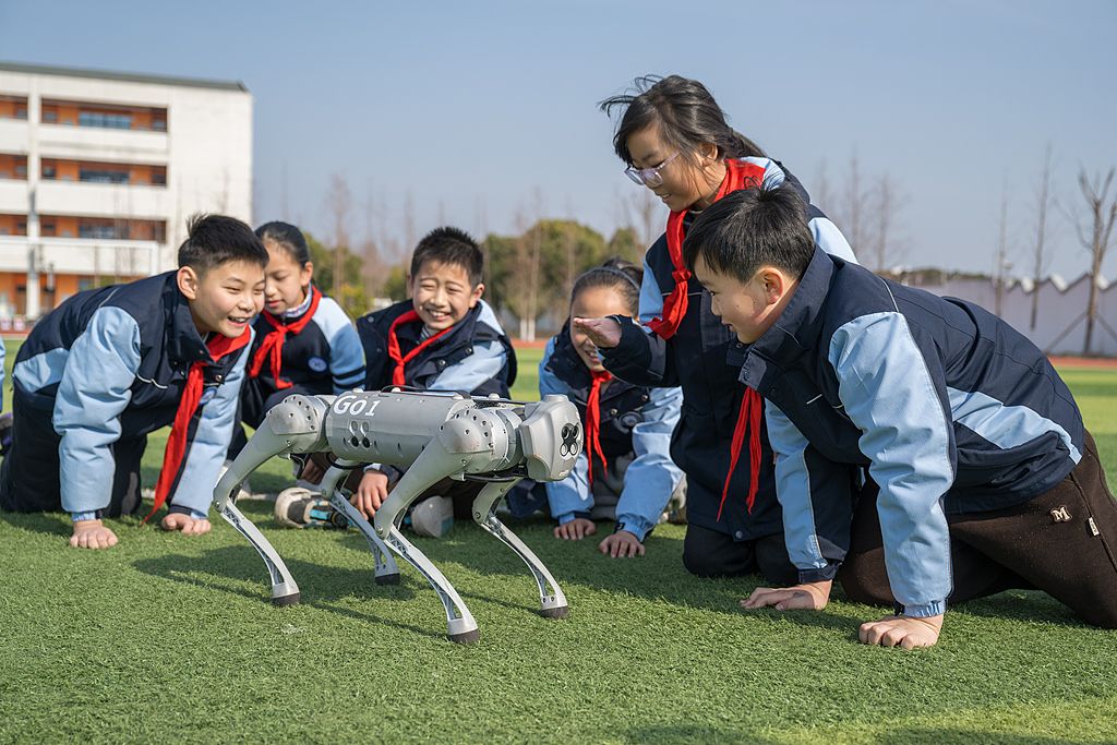 近日,昆山市信义小学在大课间活动中创新引入机器狗领跑,打造“科技+体育”特色项目,让学生们体验前沿科技新品,逐步激发对运动兴趣。