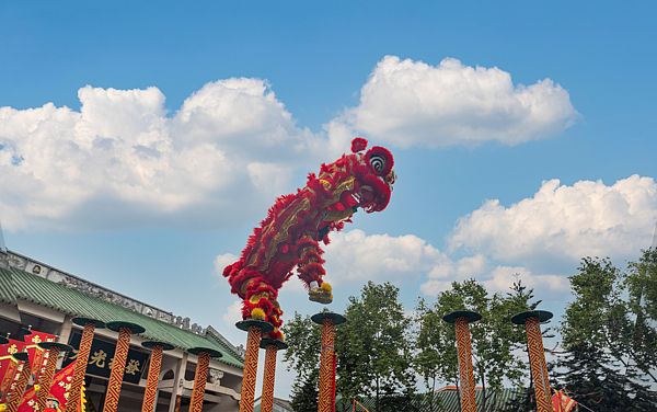 新年开工,在粤港澳各地,商家邀请醒狮队到店门前“采青”是一项重要传统。广州市白云区一家工厂门口的醒狮表演便是缩影,孩子们骑在大人肩上满怀期待,精美的狮头栩栩如生,舞者们随着锣鼓节奏,操控狮子做出各种高难度动作。黄色狮子稳重大气,红色狮子热情奔放,奔跑腾跃间尽显活力。最精彩的“采青”环节,狮子与“青菜”斗智斗勇,表演者腾空咬“青”、吐“青”纳福,将对美好生活的祝愿传递给现场每一个人,也将表演推向高潮。这种现象在广东随处可见。
