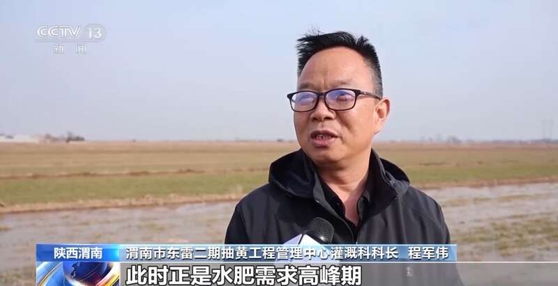 渭南市东雷二期抽黄工程管理中心灌溉科科长 程军伟:此时正是水肥需求高峰期,也是产量形成的关键期。目前,日灌溉是两万亩,这轮灌溉,计划三月上旬结束。