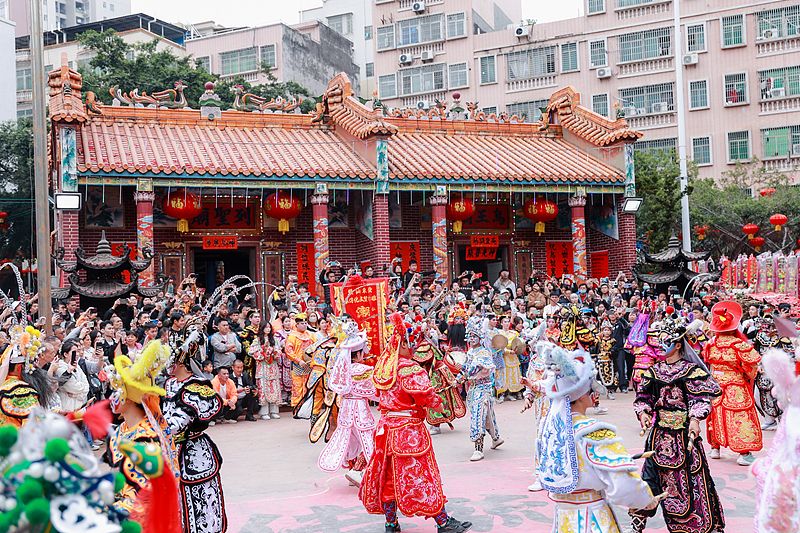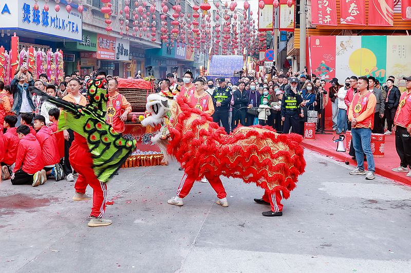 2025年2月14日,广东省湛江市赤坎区百姓村迎来一年中最热闹的“年例日”。古老民俗惊险上演,百米巡游长龙穿梭于张灯结彩的街巷,千桌宴席摆开,万人盛宴。