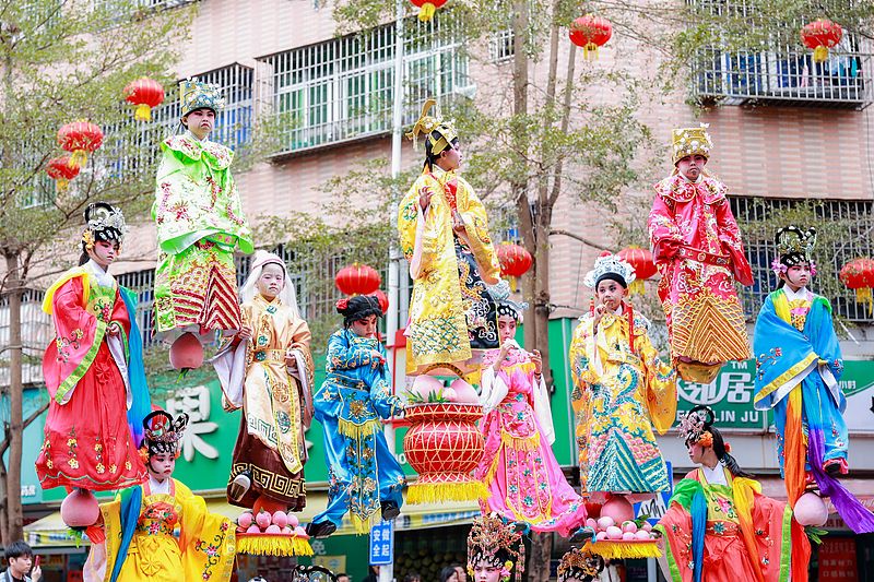 广东湛江:街巷张灯结彩 百米巡游长龙穿梭