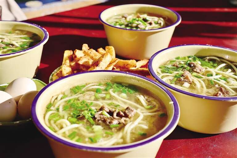 在西藏,人们总能将简单的食材做出独一无二的“西藏味道”。一壶甜茶,一碗藏面,一份炸土豆或肉饼,便是这里最标准的早餐套餐。清水、红茶茶叶、甜奶粉或牦牛奶,只需简单的食材,便能制作出茶香浓郁、奶味醇厚的甜茶。在略带寒意的初春,喝上一口,整个身子都暖了起来。此时搭配一碗筋道的藏面,简单又满足。