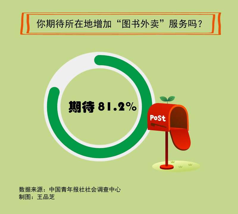 近年来一些地方开展“图书外卖”服务,读者可以线上借阅书籍,支付一定运费就可以享受送书上门服务。调查中,81.2%的受访者期待所在地增加类似服务,让借还书更便捷。