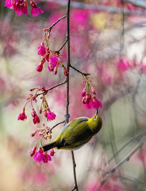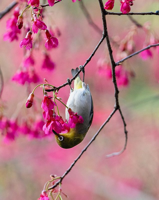 樱花初绽 绣眼鸟依偎争春