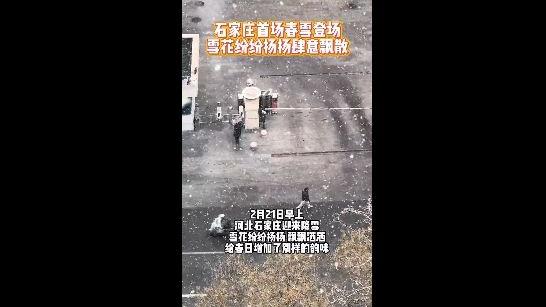 石家庄首场春雪登场:洁白雪花如柳絮般纷纷扬扬,肆意飘散
