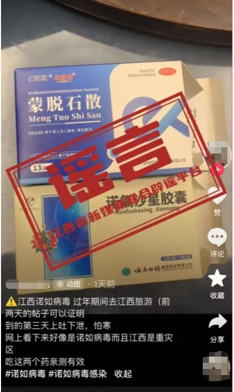 日前,有人在网上发布视频称,诺如病毒来势凶猛,江西成为诺如病毒重灾区,视频里还推荐了药物。据了解,人体感染诺如病毒后,最常见的症状是腹泻和呕吐。该传言发布以来,相关止泻止吐药品也在江西部分药店热销。