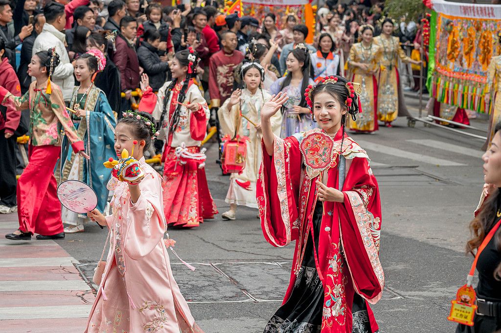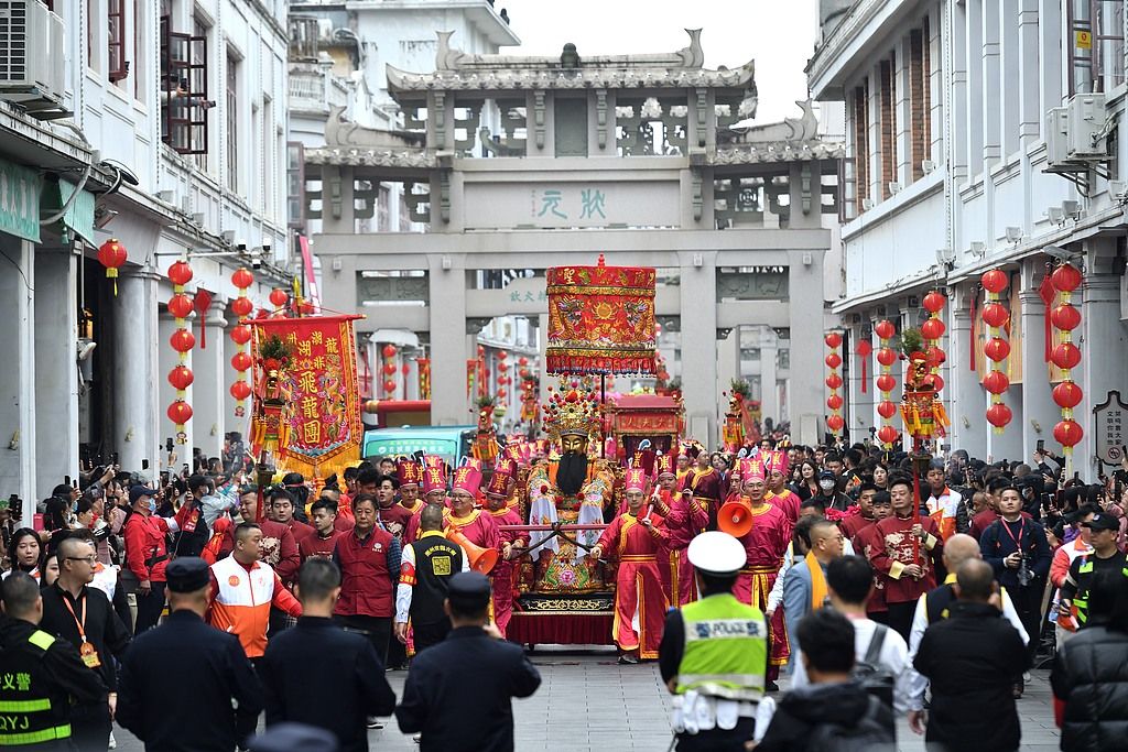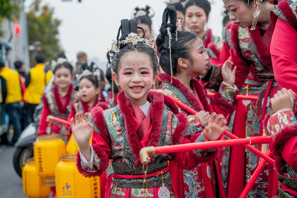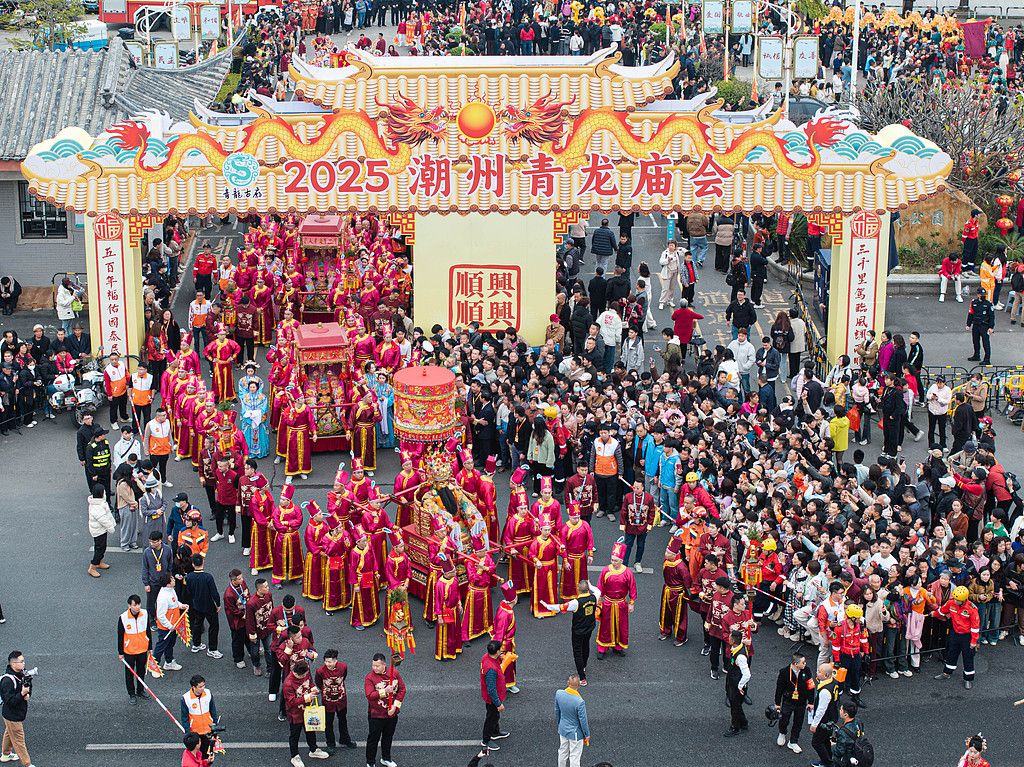 2025年2月21日,广东潮州,2025年潮州市青龙庙会非遗巡游活动举行,现场潮州大锣鼓、英歌舞、布马舞等数十项非遗表演精彩亮相。“潮州青龙庙会”是广东省非物质文化遗产保护项目,寄托着海内外潮人对“兴兴顺顺”、国泰民安的美好愿望,它也是潮州民俗传统文化的嘉年华和联结海内外乡亲的平台。