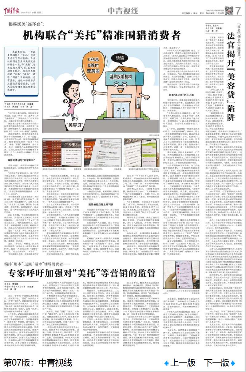 据中国青年报今日7版,在医美行业,一些医美机构联合“美托”为消费者设下种种套路。医美机构预先在生活美容院安排销售人员,即“美托”,与美容院工作人员、医美咨询师等配合,按照事先编排的“剧本”“话术”,精准“围猎”目标顾客。更有甚者,通过一些网贷产品提供高利贷服务,让陷入美容贷的年轻消费者苦不堪言。详情