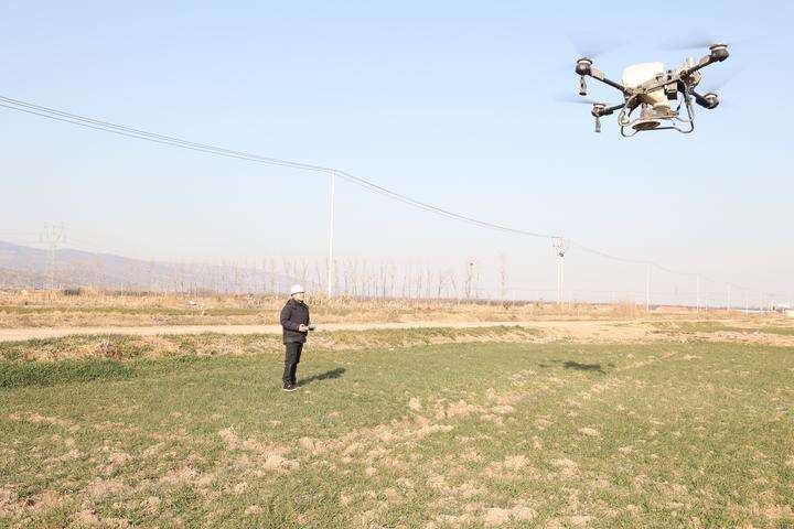 在位于江苏连云港的云台农场,高效节能、操作便捷的植保无人机腾空而起,成为1.8万亩小麦春季管护的得力助手。通过无人机作业每1000亩地仅需一名工作人员,两天便可完成农场全部小麦地的施肥。