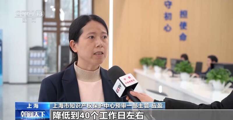上海市知识产权保护中心预审一部主管 应盈:专利预审服务可以帮助企业更快获得专利授权,平均周期可以从接近20个月降低到40个工作日左右。
