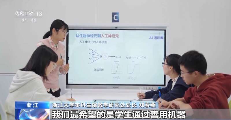 浙江大学本科生院教学研究处处长 郑春燕:我们向全校的学生推出了人工智能ABC三个层次的课程,分别面对不同的专业基础和学科背景的学生。我们最希望的是学生通过善用机器,形成人机合作的一种最佳的工作模式。