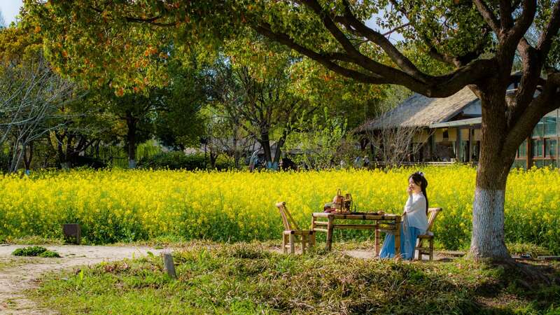 3月8日,春花田埂趣野集将在龙形田启幕,并持续至4月13日。在龙形田金色油菜花海之间,游客们漫步其间,不仅可以拍照打卡,还可以在听风阁内的早来春茶馆中沏一壶春茶,或是在花伴咖啡屋的窗边静赏花海。