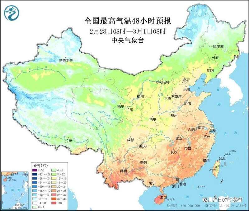 今天(2月27日)起至3月初,这波升温过程还将持续。今明天北方将率先迎来近期气温的高点,华北南部到黄淮多地最高气温将达到或超过20℃,东北地区中部和南部最高气温也将升至10℃以上,暖如常年3月底至4月初。