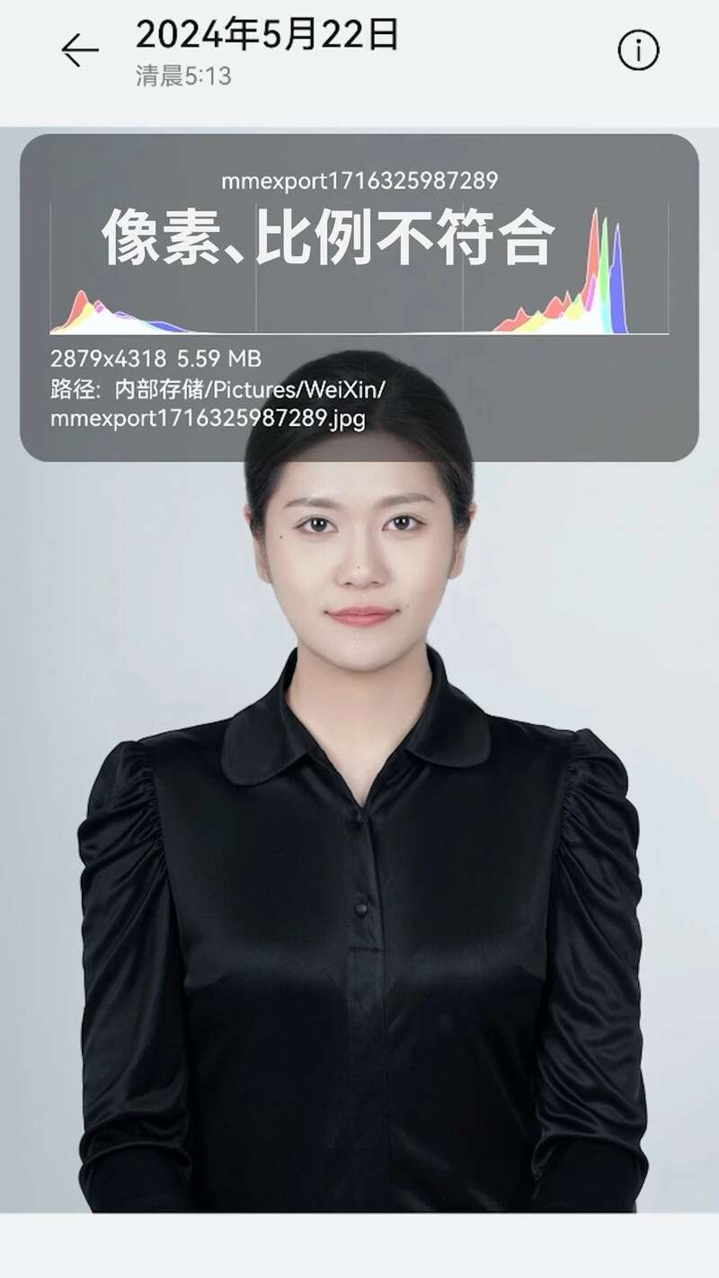 拍摄完成后,还需要检查头像是否居中,照片像素是否符合上传要求。