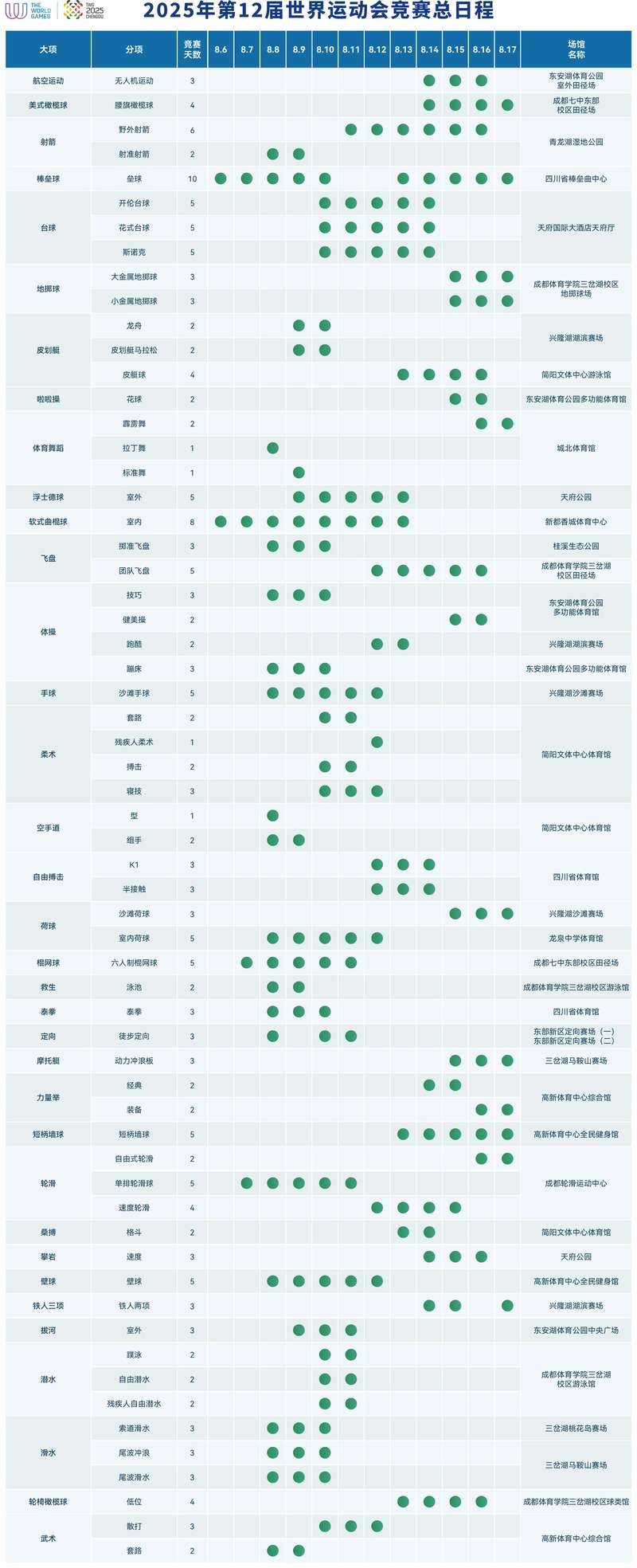 比赛将于8月7日至8月17日在四川成都举行