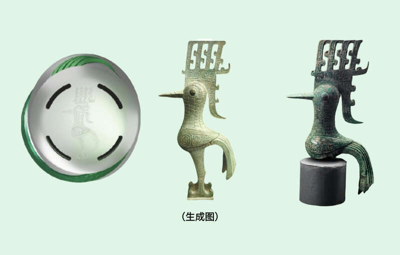 “竹梦”底部以三星堆凤鸟纹托举火炬