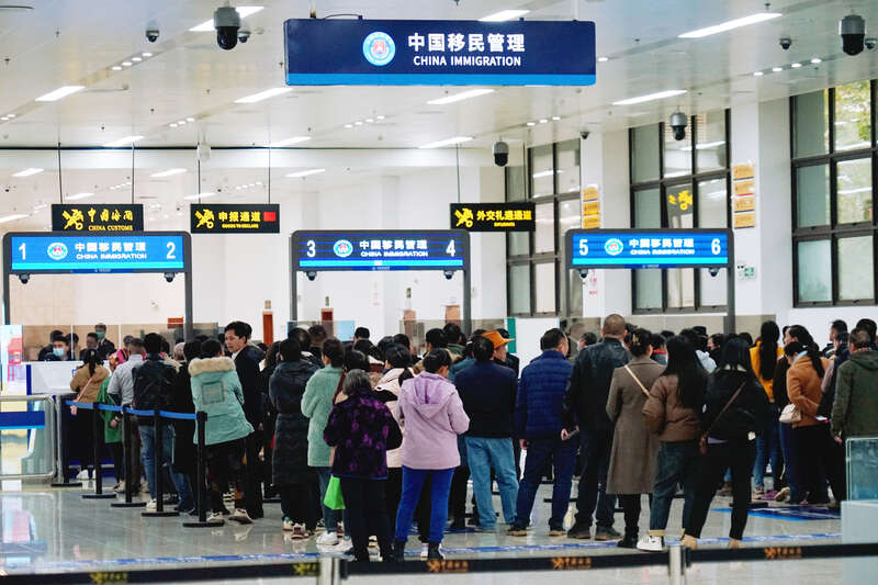 2月27日,硕龙口岸,旅客有序接受出入境边防检查。谢志帅/摄