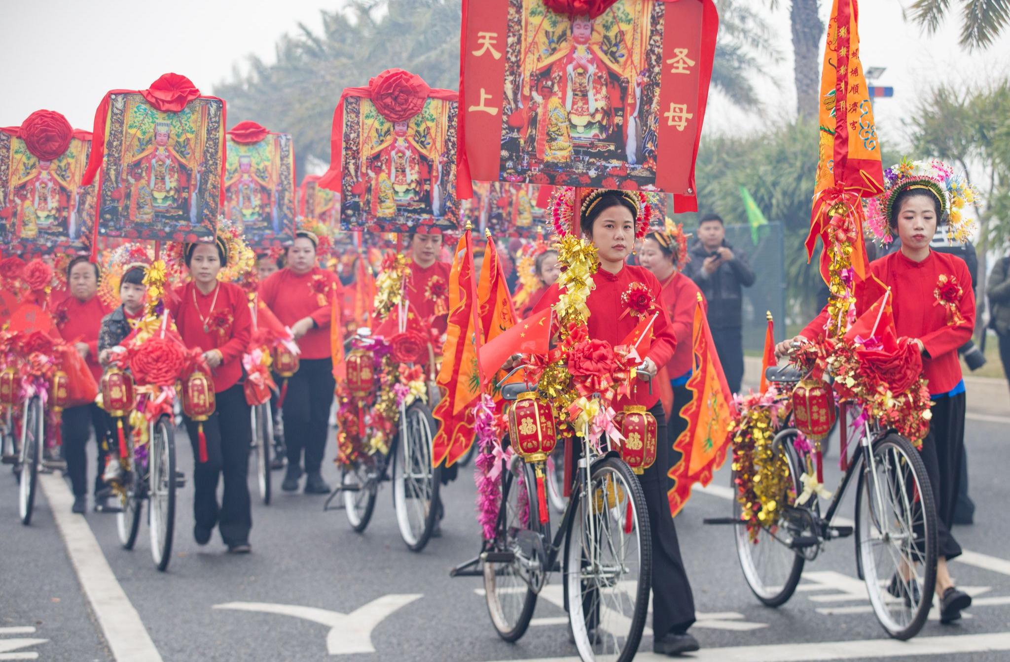 福建泉州妈祖“天香巡境” 蟳埔女簪花盛装上街