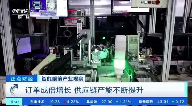 江西某智能电子产品供应链企业厂长 陈永正:今年我们工厂智能眼镜的生产订单相比去年增长400%,目前,我们工厂已经为智能眼镜业务开辟了专门的生产线,开始着手建设新的生产车间,优化了相关工艺流程,快速扩大产能。