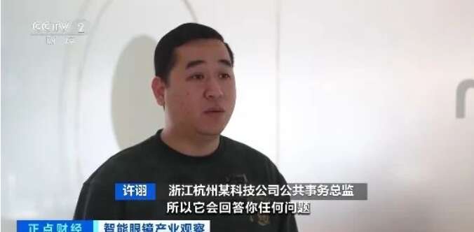 浙江杭州某科技公司公共事务总监 许诩:因为(智能眼镜)接了(AI)大模型,所以它会回答你问题,如果对面一个外国人讲外语,我镜片里面显示的就是汉字, 现在(智能)眼镜每年出货大概在10万台这个量级,平均年复合增长率(为)120%。