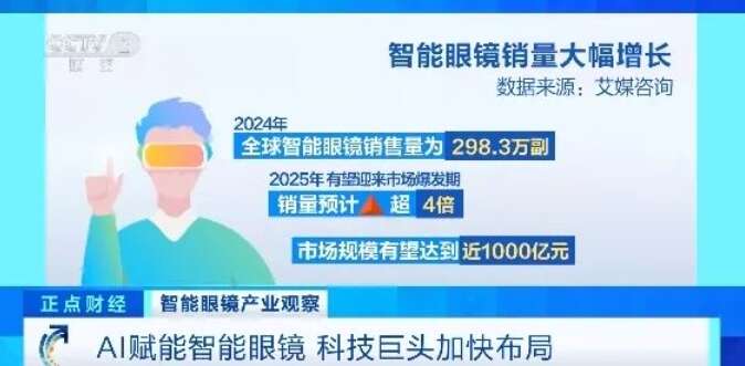 数据显示,2024年全球智能眼镜销售量为298.3万副,2025年有望迎来市场爆发期,销量预计增长超过4倍,市场规模有望达到近1000亿元。巨大的市场增量让包括苹果、谷歌、华为、小米等超过40家国内外厂商布局智能眼镜,产品数量预计超过50款。