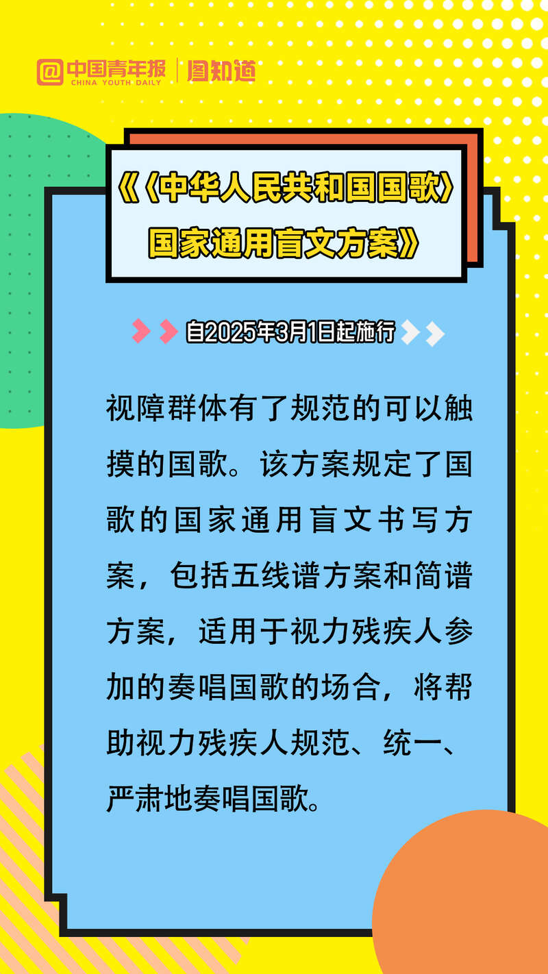 2025年3月,全国公立医疗机构取消门诊预交金、盲文版国歌、适老家具国家标准等一批与生活息息相关的新规即将施行,一起看图了解。