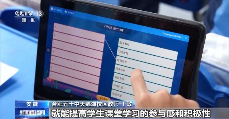 合肥五十中天鹅湖校区教师 丁敏:智慧课堂特别是人工智能的使用,我们实现了实时反馈,就能提高学生课堂学习的参与感和积极性,也引导学生去质疑、思辨、追问,深入探究。