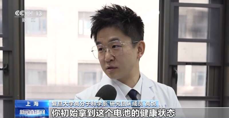 复旦大学高分子科学系研究团队成员 高悦:一个商用的磷酸铁锂电池,按照以往来说,在使用2000次之后,就会容量衰减、报废。有了这项技术,可以使它在使用12000次之后,还能够保持一个接近于初始电池的“健康”状态。