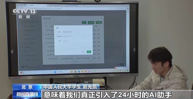 中国人民大学学生 赵光凯:意味着我们真正引入了24小时的AI助手,我们的数学知识可以放入知识库里,一个普遍性的问题的时候,就不需要再问老师了,大大减少了老师的沟通成本。