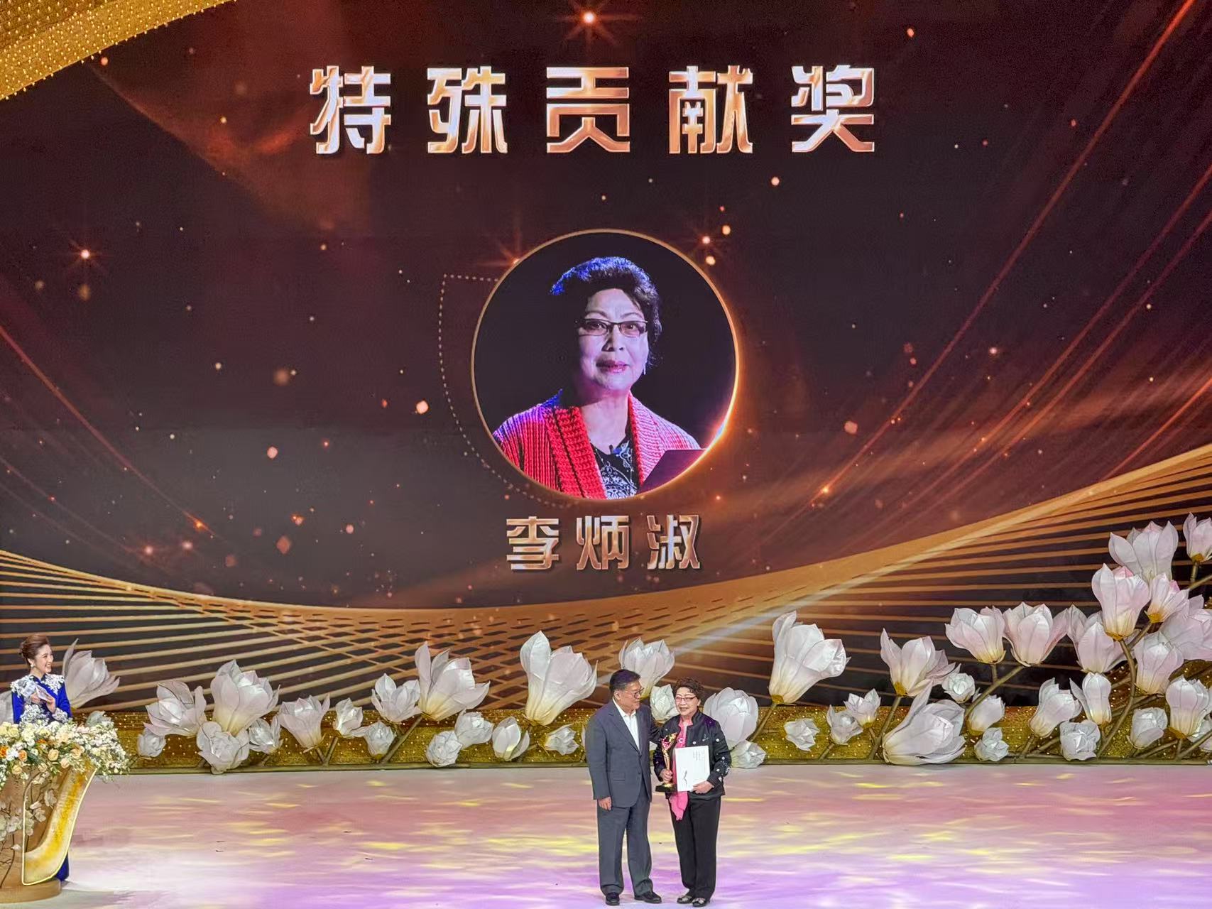 当晚最受瞩目的瞬间,当属“特殊贡献奖”被授予著名京剧表演艺术家李炳淑。李炳淑毕业于上海市戏曲学校,工青衣,受业于杨畹农、言慧珠等梅(兰芳)派名家,后拜魏莲芳为师,并得到张君秋、梅葆玖的指点。李炳淑宗法梅派,扎实地继承了梅兰芳的表演精髓,又根据自身的条件加以融合。她秉持对艺术的敬畏和坚守,把毕生心力奉献给艺术事业,为戏剧艺术的传承发展做出了巨大贡献。