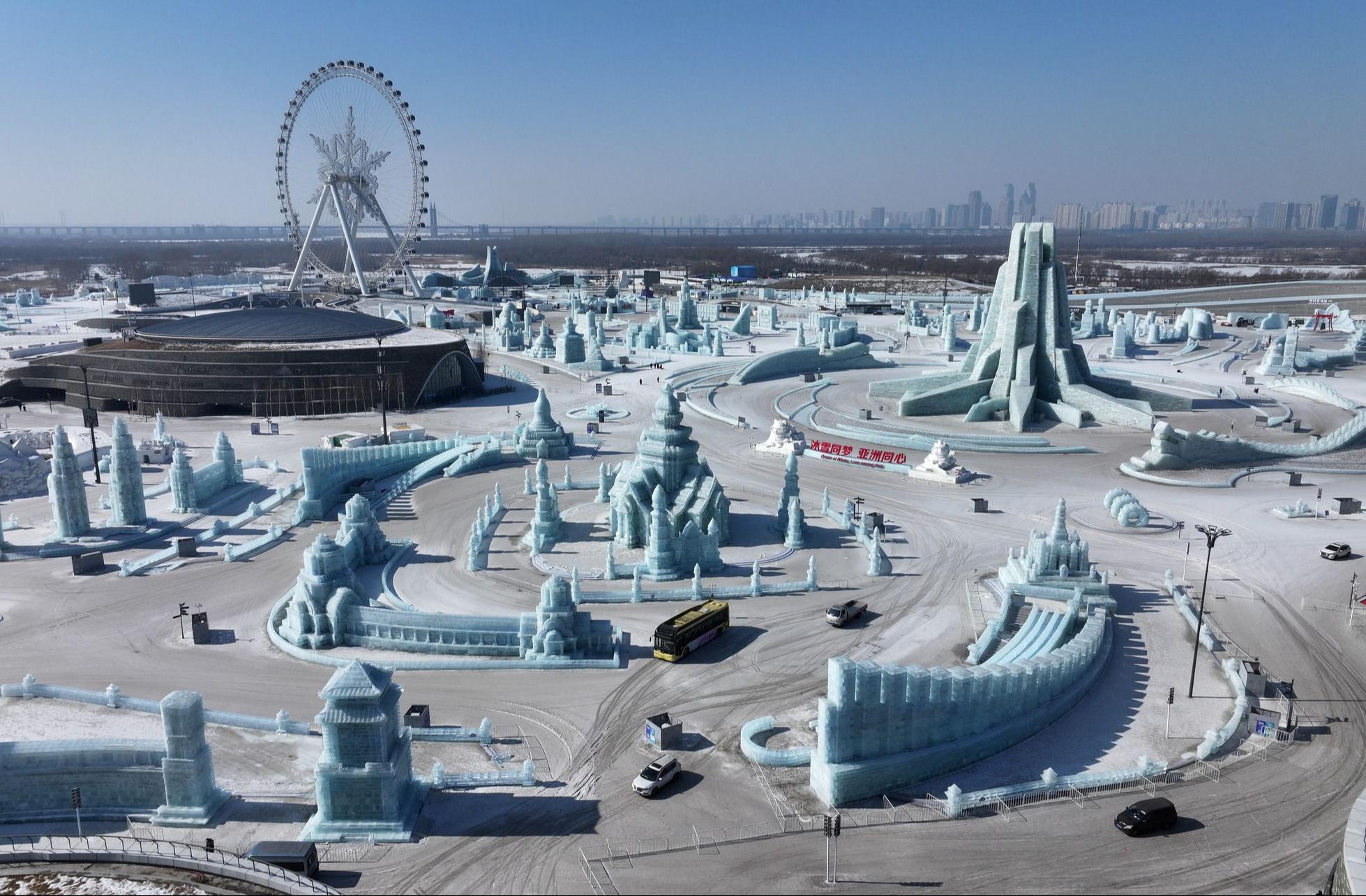 哈尔滨冰雪大世界闭园 园区设施开始拆除