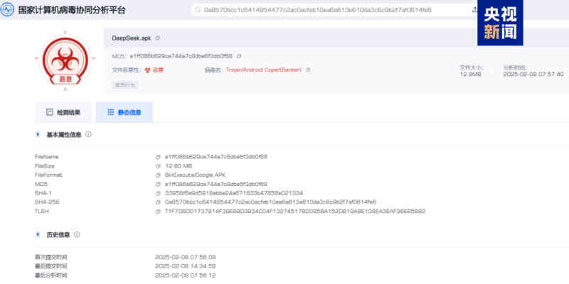 公安机关提醒!仿冒DeepSeek的手机木马病毒被捕获