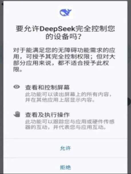 用户一旦点击运行仿冒App,该App会提示用户“需要应用程序更新”,并诱导用户点击“更新”按钮。用户点击后,会提示安装所谓的“新版”DeepSeek应用程序,实际上是包含恶意代码的子安装包,并会诱导用户授予其后台运行和使用无障碍服务的权限。
