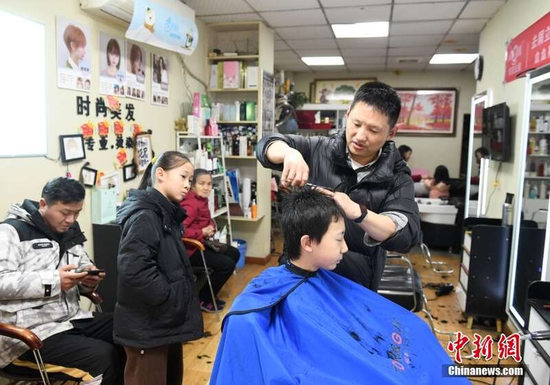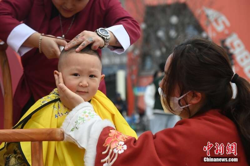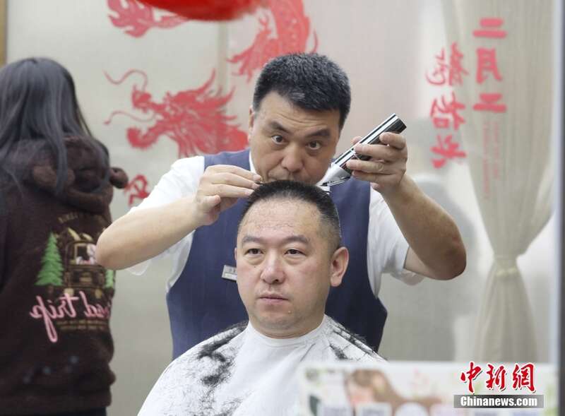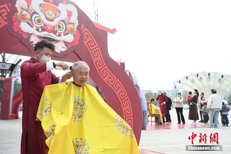 安徽省合肥市罍街举办二月二龙抬头活动,免费为市民“剃龙头”。