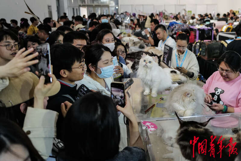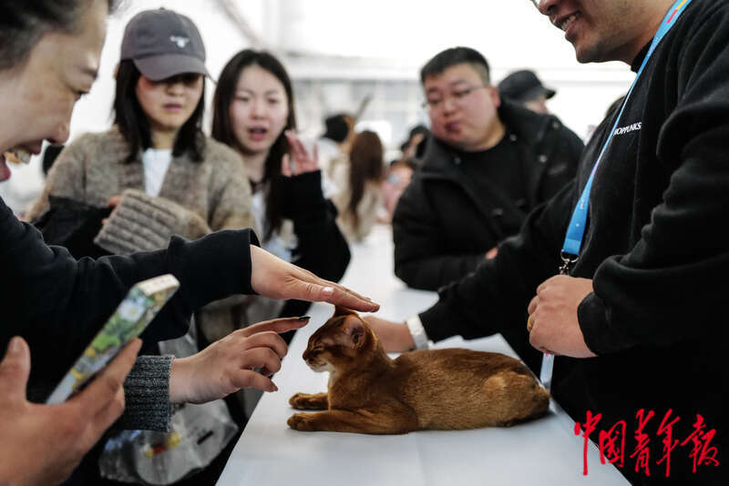 3月1日,北京中国国际展览中心(顺义馆),第12届北京国际宠物用品展,现场展示的一只小猫吸引了许多围观。据了解,本次展会展览面积约12万平方米,吸引了1500多家参展商和13000多个品牌参展,涵盖猫、狗等各类宠物的食品、保健品、玩具以及生产、包装、售后等上下游供应链。中青报·中青网记者 赵迪/摄