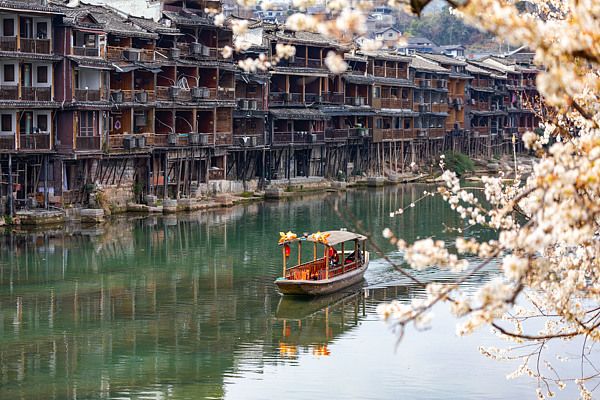 2025年3月2日,湖南湘西州,凤凰古城,沱江河畔拍摄的春季景色。