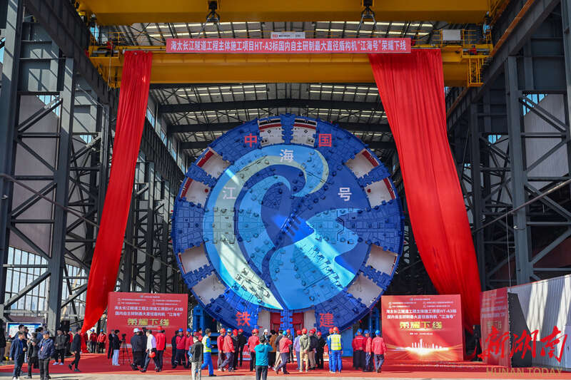 2024年10月31日,位于湖南长沙的中国铁建重工集团第二产业园区,超大直径盾构机“江海号”下线现场。 湖南日报全媒体记者 郭立亮 摄