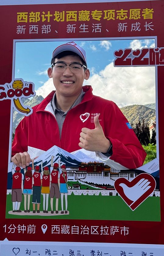 他在大一就坚定了自己要来拉萨支教的志向,并在本科期间完成了普通话考试并取得了高中阶段的教师资格证。同时他也是院篮球队队长,始终坚持体育锻炼,保持了良好的身体素质。他志愿经历丰富,本科期间志愿服务时长超400小时,是学校的“十佳志愿者”,曾参与建党百年鸟巢文艺汇演,作为海关抵离志愿者服务北京冬奥会。