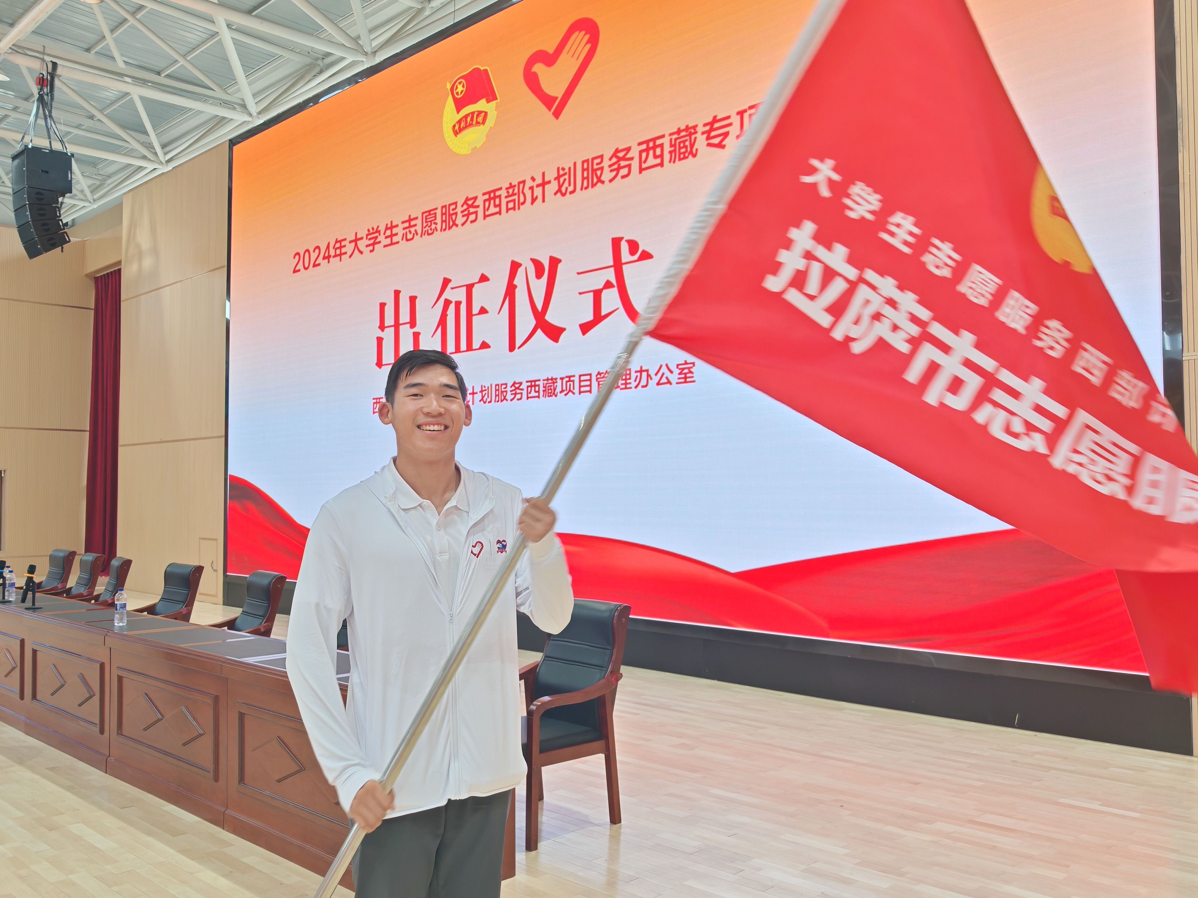 果不其然,在抵达拉萨的第一天晚上,我就觉得头像灌了铅一样,又沉又胀。平日里沾枕头就能睡着的我,那天翻来覆去,辗转了很久才迷迷糊糊地睡去。不过,我是有这样的心理准备的,拥抱高原自然会带来阵痛——大家都能坚持,我有什么做不到的!很快,我就适应了这稀薄的空气,大不了脚步放慢一点,动作放缓一点,无论如何,心是一样滚烫的。在志愿者培训的过程中,我认识了来自五湖四海的朋友们,大家相聚于西藏,培训结束后便会奔赴这片广袤土地的各个地方:阿里、那曲、昌都、山南……大家彼此之间关系特别好,能相聚于高原之上,本就是一种特殊的缘分吧。当我站在这片由志愿者服装汇成的红白色海洋当中,和千千万万的西部计划志愿者们一同举起右拳的时候,我想,这就是对“青年当有志,立志在四方,祖国需要处,皆是我故乡”的最好诠释。