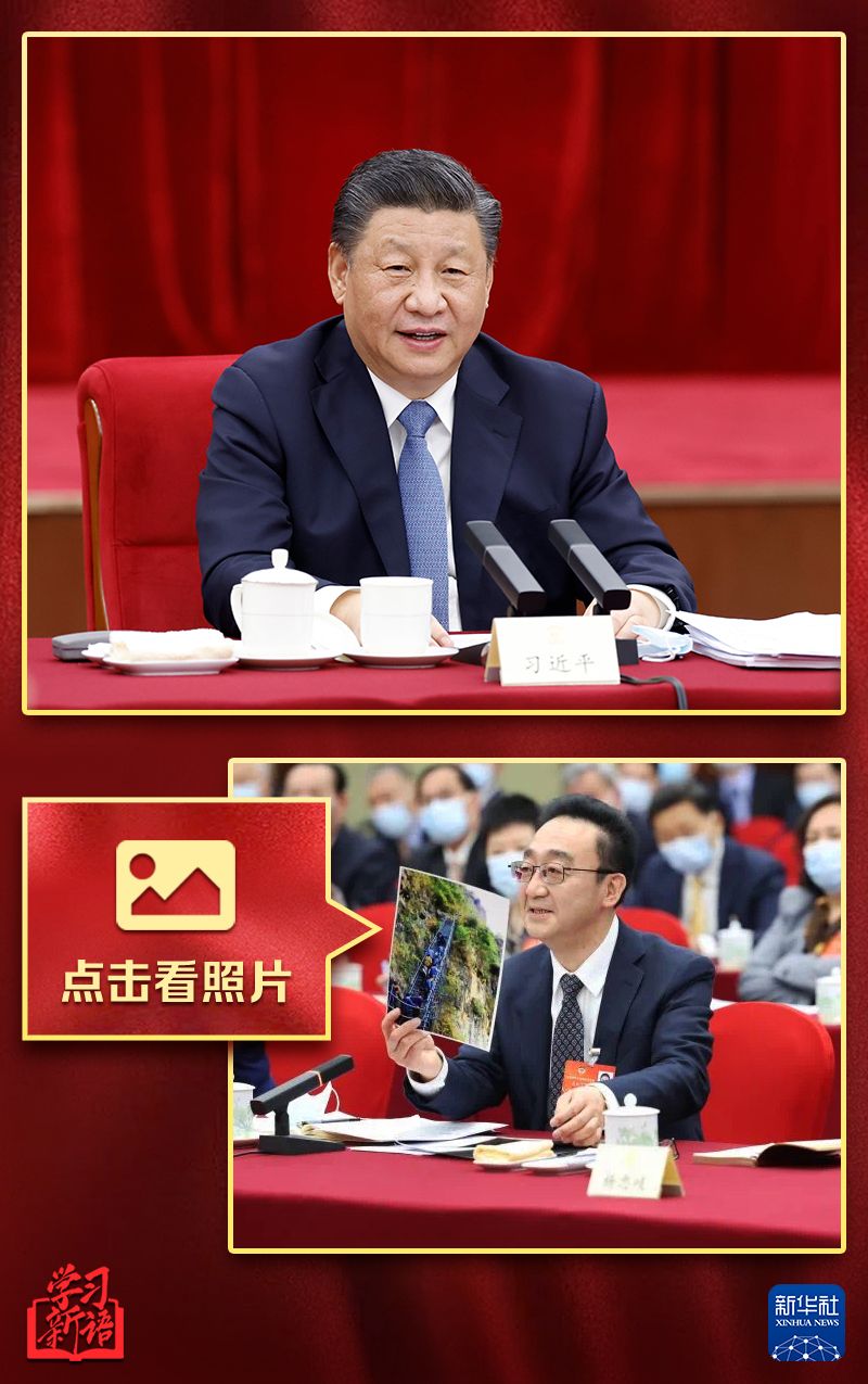 每年全国两会“下团组”,习近平总书记总会与代表委员们亲切互动、坦诚相见。在面对面深入交流中,常有代表委员用照片向总书记展示家乡的今昔对比或最新面貌。