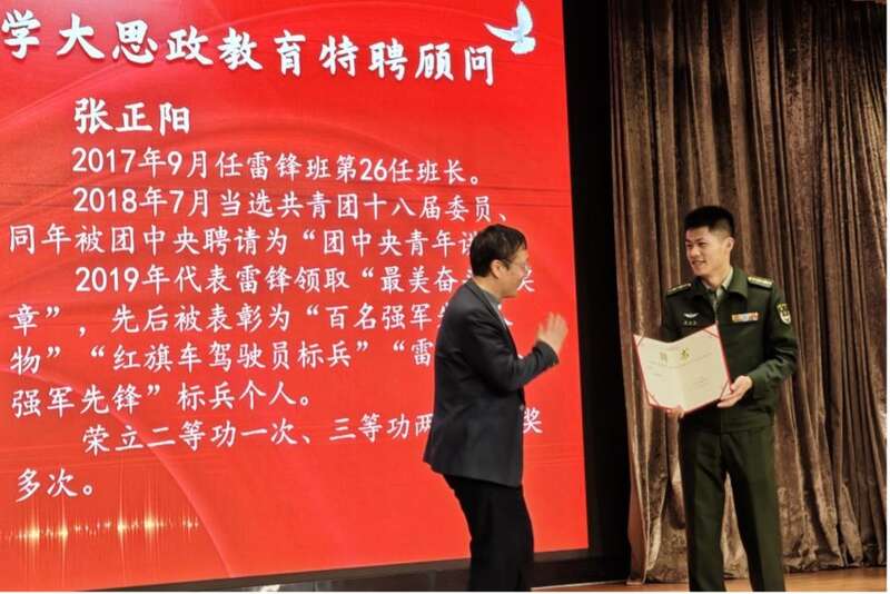 3月3日,在北京市东直门中学学雷锋志愿服务活动启动仪式上,东直门中学正式聘请张正阳为校外辅导员,并颁发聘书。实习生 云泽华/摄