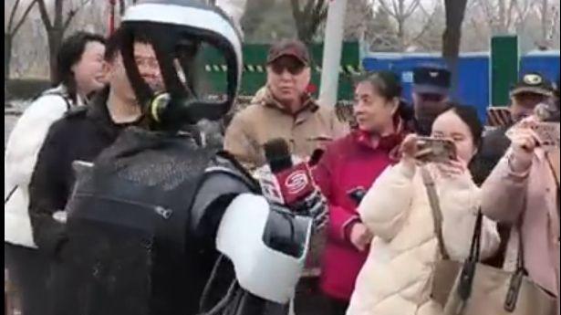 两会报道力量"上新"!机器人“记者”重磅亮相,手拿话筒街头采访