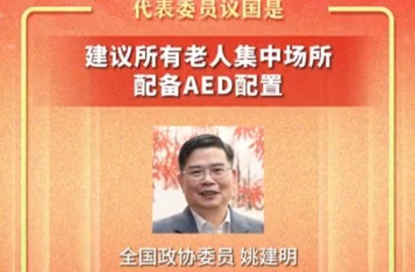 全国政协委员姚建明:建议老人集中场所均配备AED装置