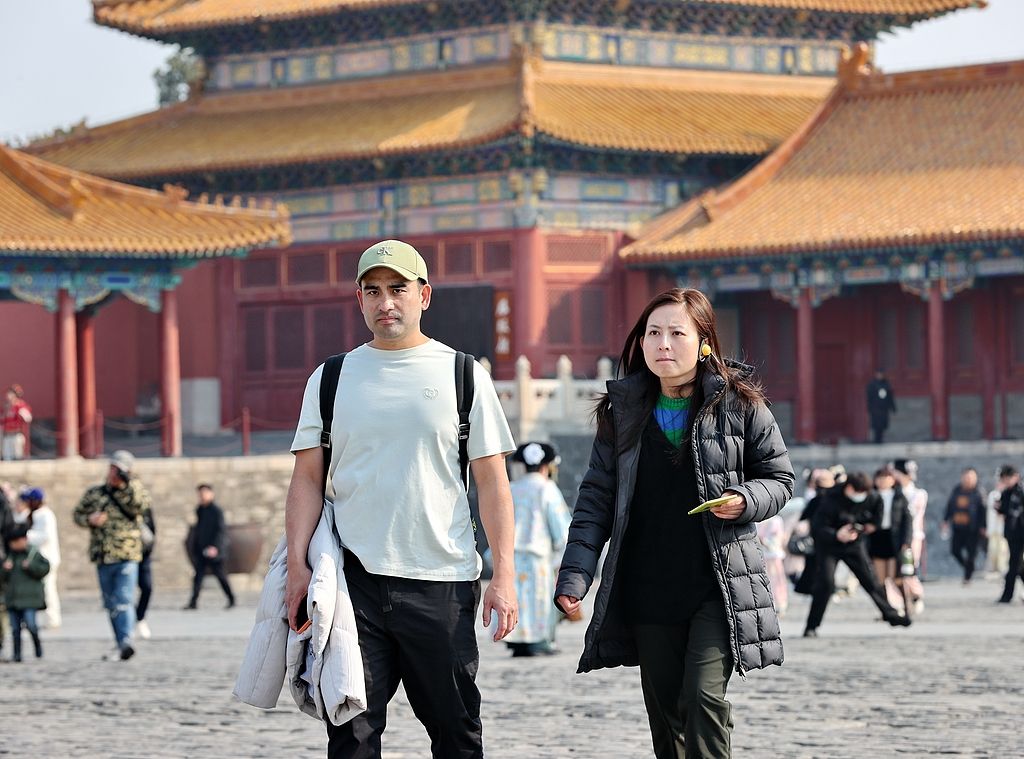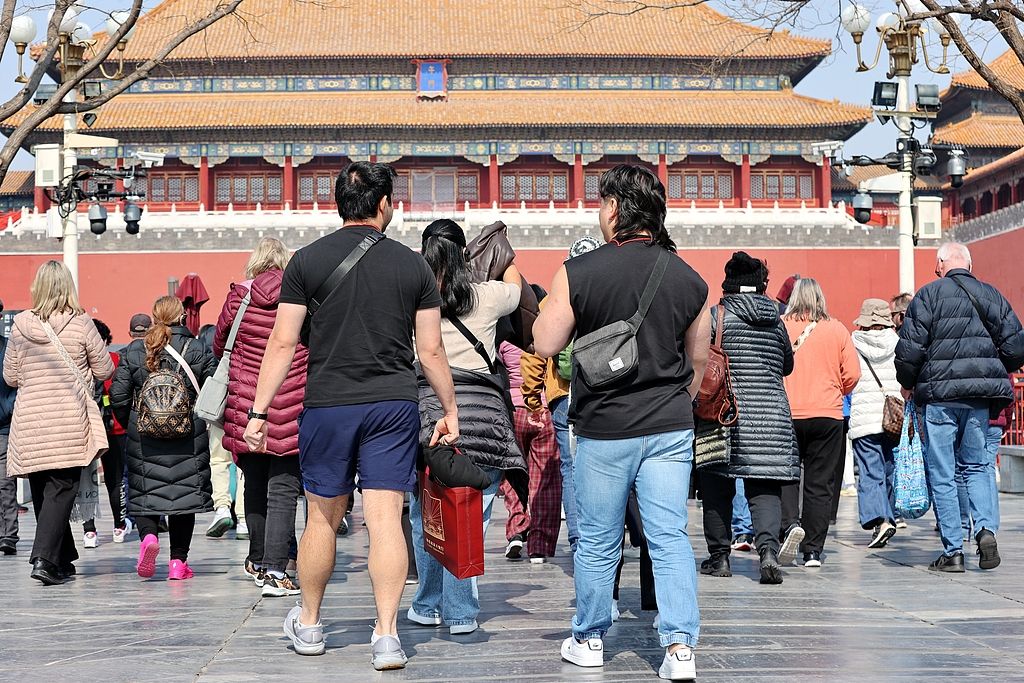2025年3月5日,北京,故宫游客上演“乱穿衣”,呈现短袖与羽绒服同框现象。当日是惊蛰节气,北京开启升温模式,午后最高气温攀升至13摄氏度,暖意融融。